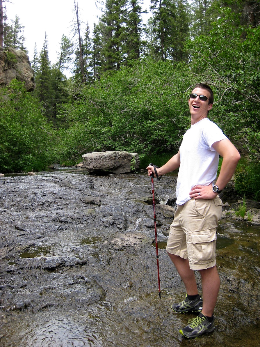 Robbie, who did not bring old shoes and was unwilling to get his hiking ones wet, stayed in the shallow water: